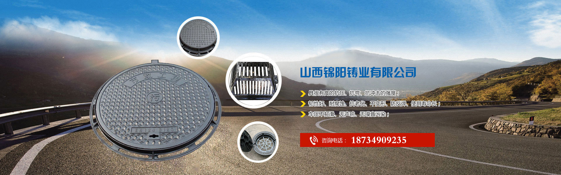 山西錦陽鑄業(yè)地處晉、陜、豫交界處臨汾市。臨汾市有豐富的礦產資源和便利的交通,本地有著悠久的鑄造歷史。 本公司專業(yè)生產圓井蓋、方形升蓋、套篦、溝蓋板、及防沉降井蓋,目前也在開發(fā)智能井蓋的應用。本公司的蓋尺寸和模具全,如有定制產品我公司可快 速出圖紙定做模具試樣。